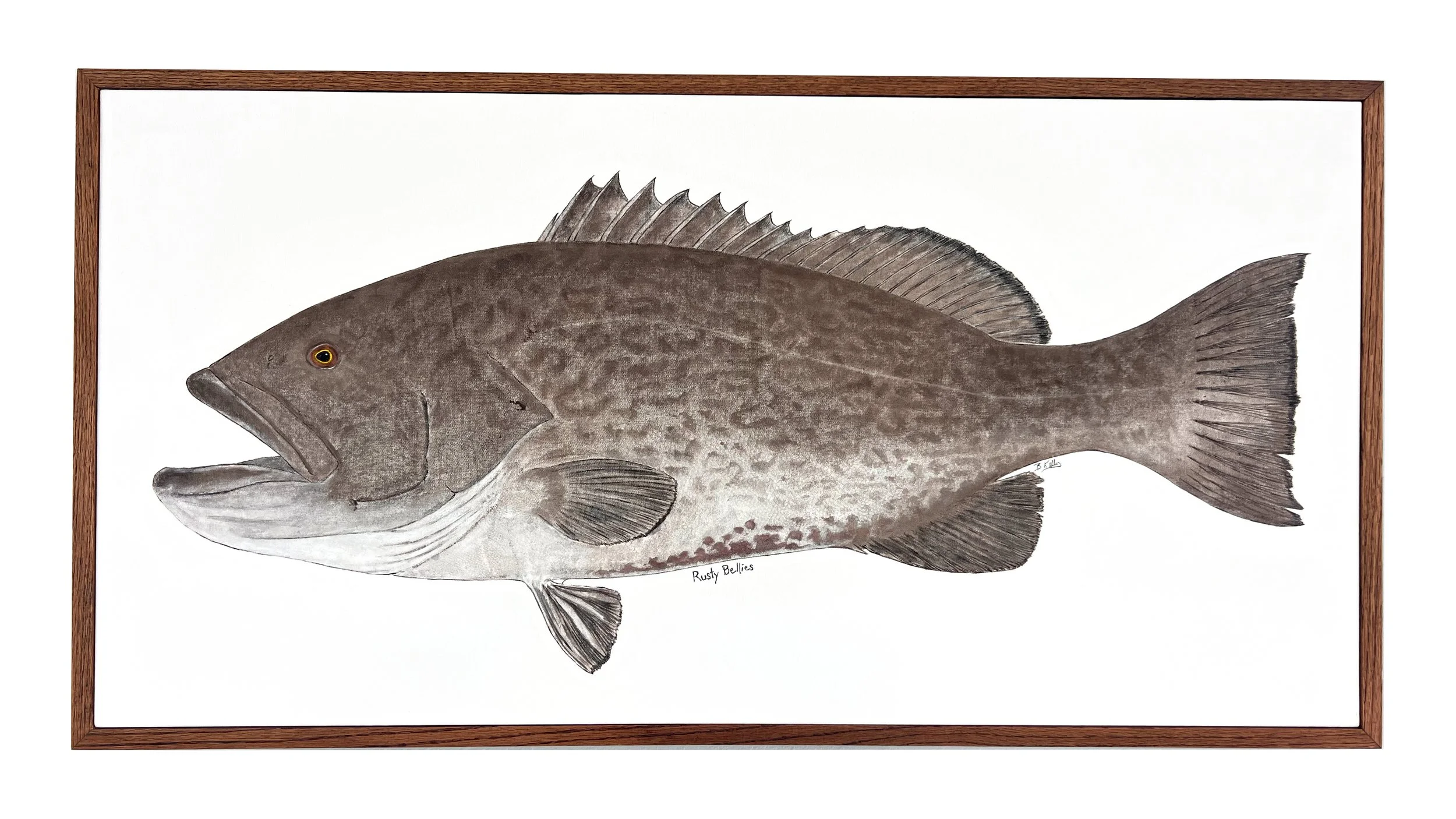 I started playing around with fish prints on rice paper a few years ago, just for fun, but it never took off because I was more interested in underwater photography and driftwood sculptures at that time. But, on the morning of June 1st, 2022, opening day of grouper season, I speared a Cubera Snapper. I had never seen one of the coast of Hernando Beach, so this was a special fish for me that I wanted to hang on the wall. I decided to give Gyotaku another chance and bought some canvas this time. The first print wasn’t great, but the second was a success. I made a few more prints of various fish that year but it wasn’t until the early part of 2023 that I think I messed around enough to really figure it out. And when I figured it out, I got addicted, printing every fish I could get my hands on. I printed my fish, my friends fish, and I even purchased fish of different varieties. I learned that they don’t hold paint the same or print the same and I began to perfect my craft.