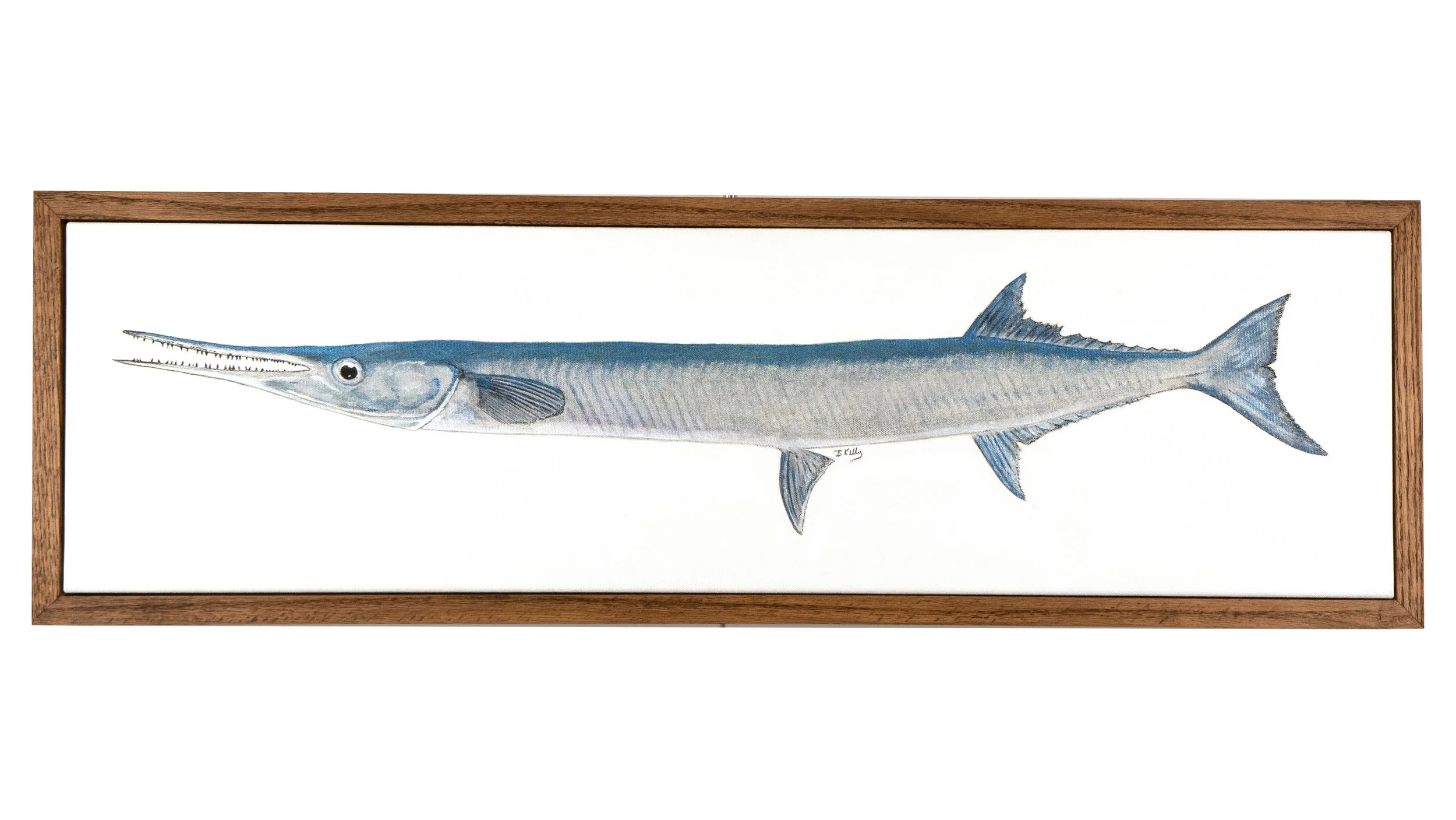 Acrylic on Canvas frammed in oak. 19.5 x 41.5”